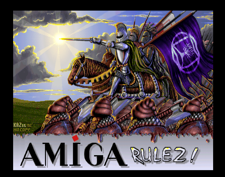 The KAZik’s artwork is amazing. Reminds the best days of Amiga, when I use to write “Amiga rulez!” everywhere too 🙂 Good times.