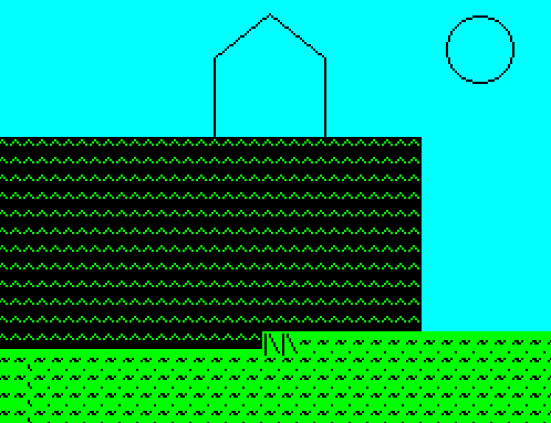 After selecting the lawnmower, the game starts. You both accelerate and decelerate with “M”. That is the controls. You are presented with a lawn that must be mowed. You press the “M”-key continously to cut the grass and after a short time, the level is complete. Now you can restart if you want to have another go. The level is exactly the same and so is the mower. There is no scoring system either. It’s just like real life. You mow the lawn and the grass grows back. You then have to mow again.