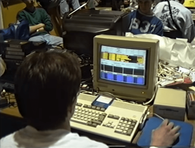 In the footage you’ll see people hacking away at their Amiga’s with Protracker, Assembler, Deluxe Paint, and also playing games like Desert Strike. The video is a must see! Have fun!