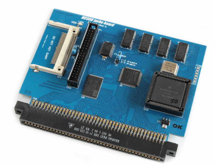The HC 508 is a accelerator for the Amiga 500 with a fast 50 Mhz clocked 68k cpu, IDE controller, CF slot and 8 MB FastRam.