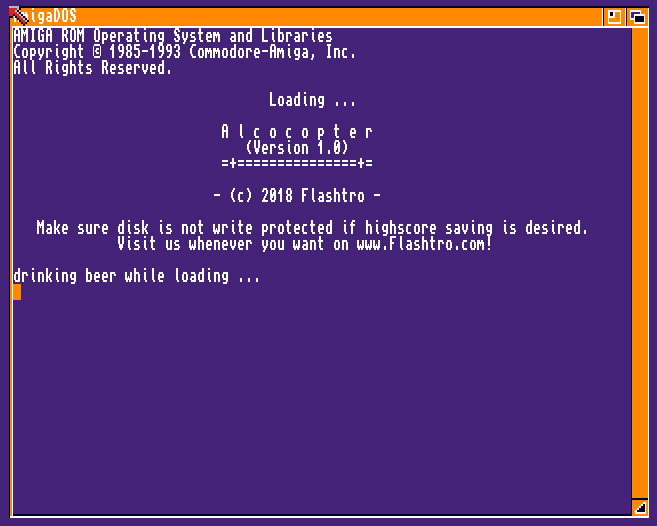 A new, small game has been released for the Amiga by Flashtro. It is called Alco-Copter and was made available this month.