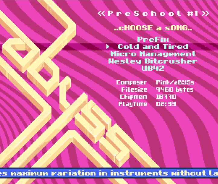 Abyss, the legendary demo group, is back in action with a brand new music-disk called Preschool #1! This is their second release this year. Some of you might recall Wesley Bitcrusher from Revision 2018.