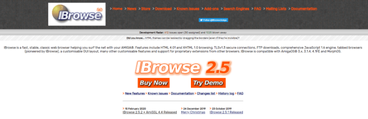 IBrowse 2.5.2 is now available for download (OS4 users can also upgrade using AmiUpdate). This update is primarily to accompany, and to allow IBrowse users to benefit from, today’s release of AmiSSL 4.4. Normally, existing versions of IBrowse 2.5 will automatically use new releases of AmiSSL v4, without IBrowse needed to be modified, but on this occasion a rebuild was necessary.