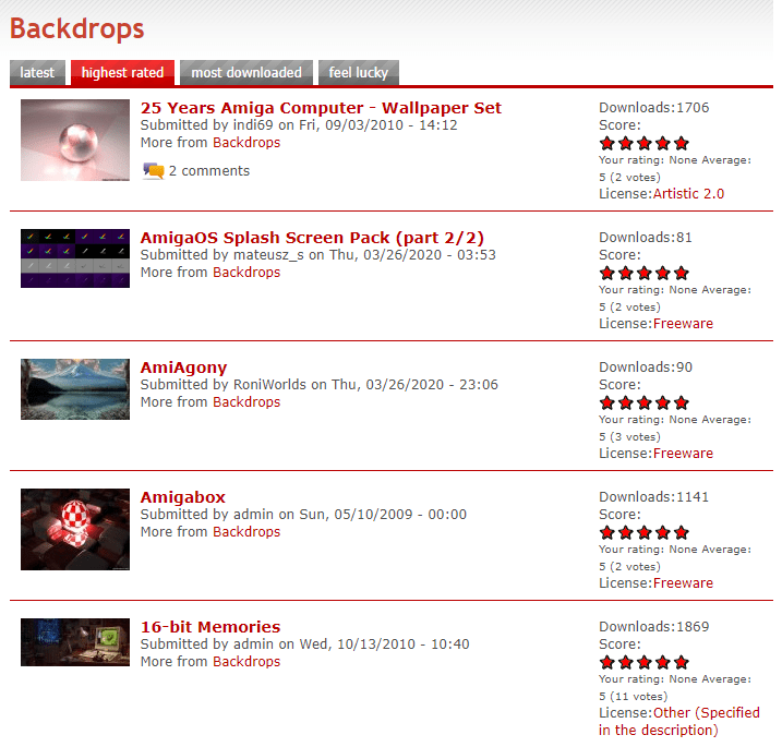 You’ll find packages for AmigaOS 4, but also for MorphOS, Classic etc. Most is for AmigaOS 4 though. You can sort the files after date, highest rated, most downloaded or make the website list at random.