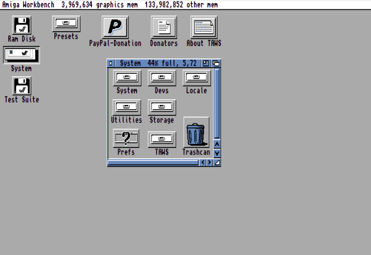 A long time ago I wrote a small text about TAWS, The Amiga Workbench Simulation. This is basically a simulation of the various operative systems on Amiga platforms. TAWS was created by Michael Rupp and is under development.
