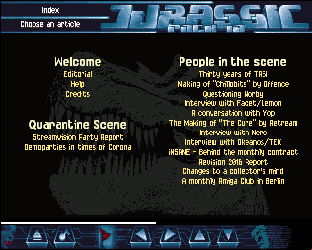 If you are interested in the Amiga and the Demoscene, then you should be happy to hear that a brand new issue of the long running Amiga diskmagazine Jurassic Pack has been released! This time it is issue 18 and as usual it is packed with interesting content, a stylish interface and nice music playing in the background. 🙂