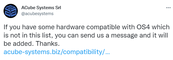 The last thing to report is that ACube Systems are looking for information about AmigaOS 4.1 compatible hardware to include in their AmigaOS 4.1 compatibility list. I have published a post concerning this earlier today, which you can read here.