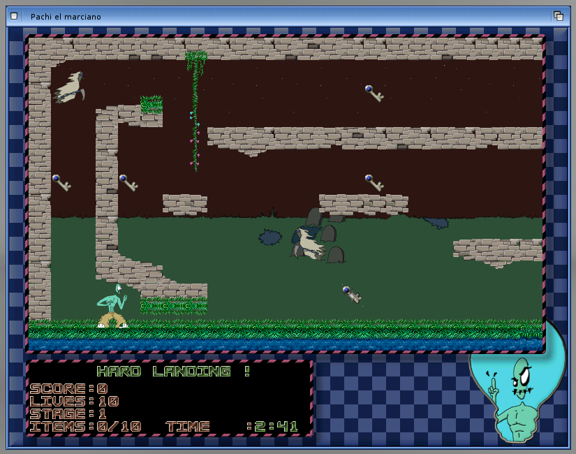 Anyway, today I’ve tested a game called Pachi el Marciano, a platform game ported to AmigaOS 4.x by ToAks. It is free to download from OS4Depot and installing it is a matter of extracting the archive to the destination of your choice. Then you double-click the icon of the game to start playing. You can choose to play the game in a window on your Workbench desktop or in fullscreen.