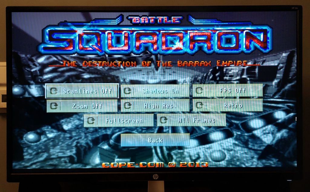 Once up and running, you are greeted with an extensive menu. Here you can change everything from controls and difficulty, to turning scanlines on and off. There are plenty of things you can adjust to your liking, as you can see from the screenshot below.