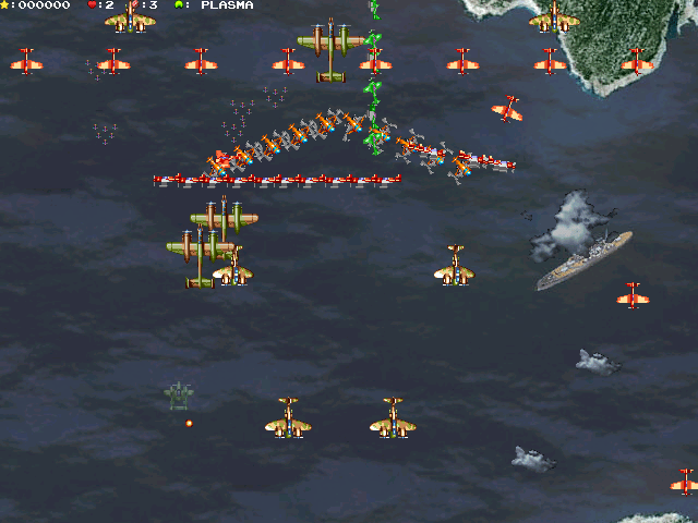 1941 Extreme Deluxe is a no-nonsense shoot’em up. The aim is to destroy all enemies and advance to the next level while avoiding vast amounts of bullets flying around the screen. Controls are easy to learn. You use the cursor keys for movement, left CTRL to fire, B to drop bombs, and ESC to quit. You can also use a joypad if you want, but I did not try that. There are many kinds of power-ups to collect providing you with better weapons, fast movement, and much more.