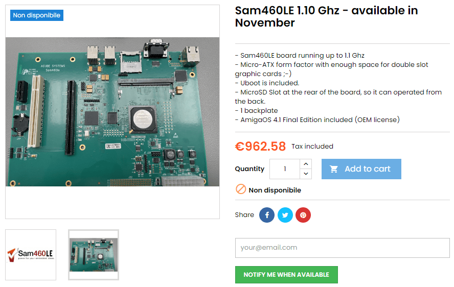 There has been confusion about whether the Sam460LE was in stock and available for purchase or not. I was under the impression that one could buy these boards from ACube System’s webshop and other retailers, but this was incorrect.