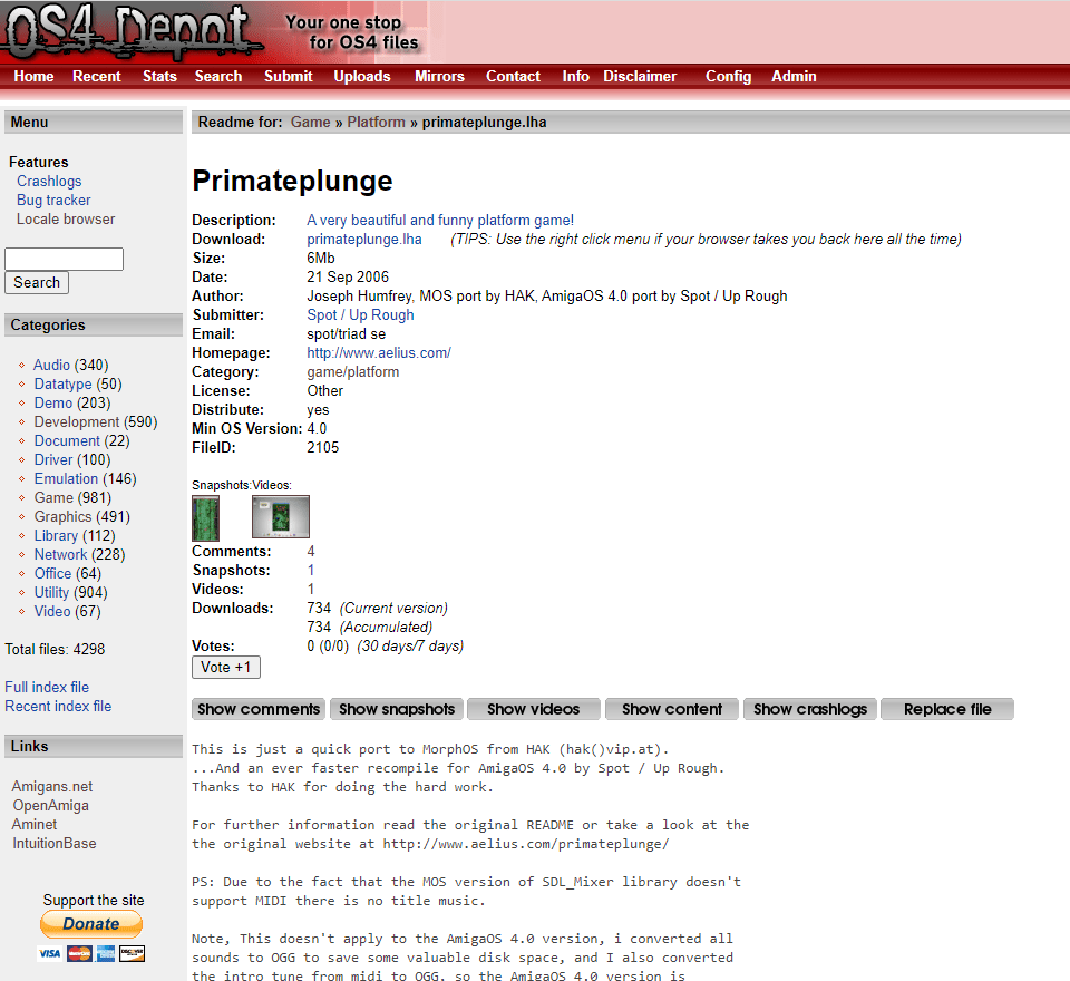 OS4Depot supports both videos and pictures for releases, as well as letting users provide feedback on them through comments. This can be helpful for developers looking for feedback on how their programs perform, but also for users looking for software to download.