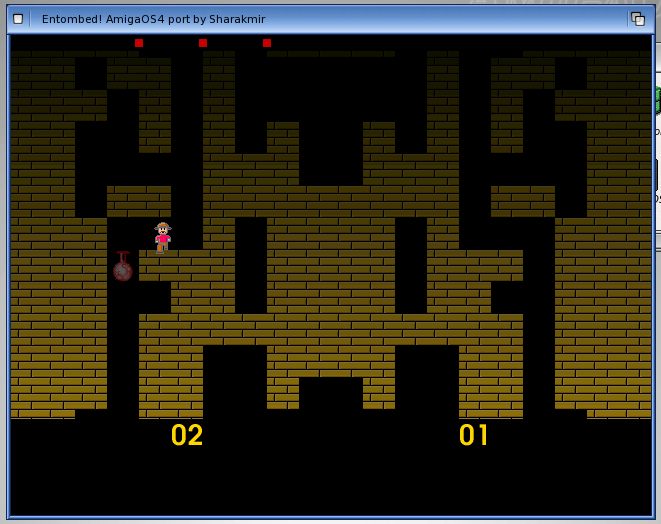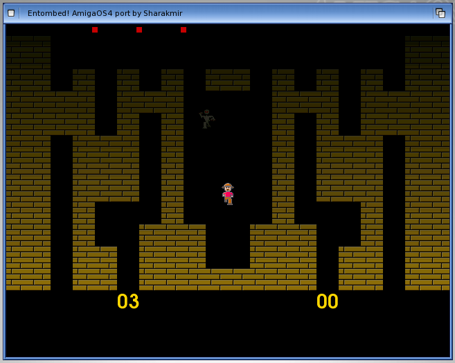 Entombed runs very well on AmigaOS 4. The game is easy to get into, such as learning the controls and how the game works. The audio is good all the way, creating a fitting atmosphere. The tune on the opening screen lifts up the mood, while the one in-game is a bit spooky, as it is combined with noises from wolves and monsters. Great stuff! I found Entombed fun and challenging, but must admit to not getting very far on my attemps. π Practice makes master I guess! If you enjoy games like these, I recommend you give it a try. If you most like other kinds of games, give it a try nonethless, it is free and you might enjoy it.