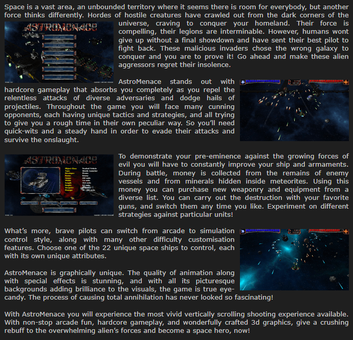 Screenshot of the official webpage of AstroMenace