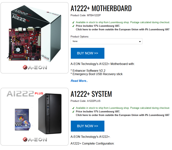 Now for one of the biggest news of this month. The A1222+ is now finally available for purchase! It is great to see that the computer is now available. It has been a long journey for Trevor Dickinson, A-EON Technology, and the other parties involved, but now it is finally out in the market.
