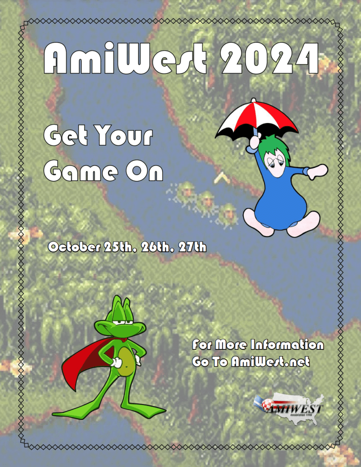 AmiWest 2024 theme is “Get your game on!”. Gaming has been a mainstay of the Amiga platform since before it’s inception. The last few years have seen a resurgence in Amiga games and gaming across all platform flavors. This year AmiWest will focus on a celebration of all things Amiga gaming. This includes HW innovations, the latest modern retro releases, the latest game engines like Redpill, Hollywood, and Scorpion, with the latest tools like UniJoysticle. Watch amiwest.net for the latest updates and information.