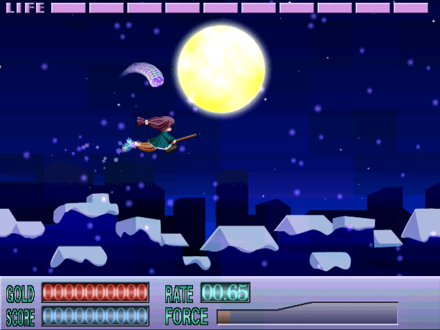 Magical Broom Extreme is a freeware horizontal shoot ’em-up game from the Japanese developer Twin-Tail. It sports 3D weapon effects and overall good gameplay. You are in control of the witch flying on a broomstick. Your goal is to survive the journey to the end of each stage.