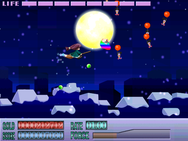 You control the witch with the arrow keys, as well as Z (single shot), X (bomb), C (autofire), and V (special shot). Pressing Escape quits the game.