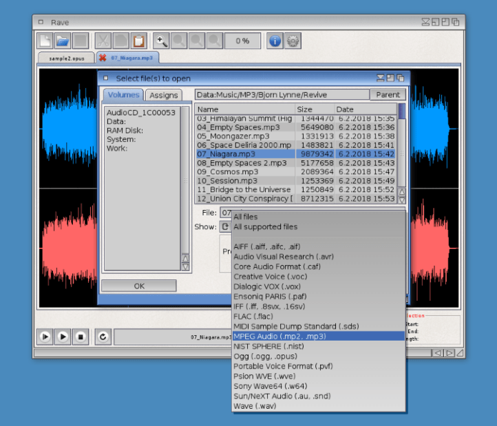 Rave is a sound editor for AmigaOS4-compatible computers. It provides functionality for manipulating and storing digital audio files.